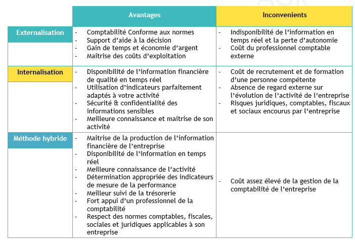 Tableau de synthèse des avantages et inconvenients des 3 solutions pour la gestion comptable de votre entreprise